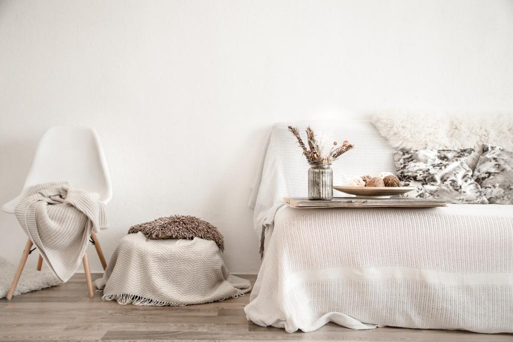 Ein senfgelber Sessel oder Plaid setzt optimistische Wärme neben sanften Neutraltönen. Die Farbe wirkt lebendig, bleibt aber angenehm gedämpft. Teilen Sie in den Kommentaren, welches Möbelstück Sie als Akzent mutig einfärben würden.